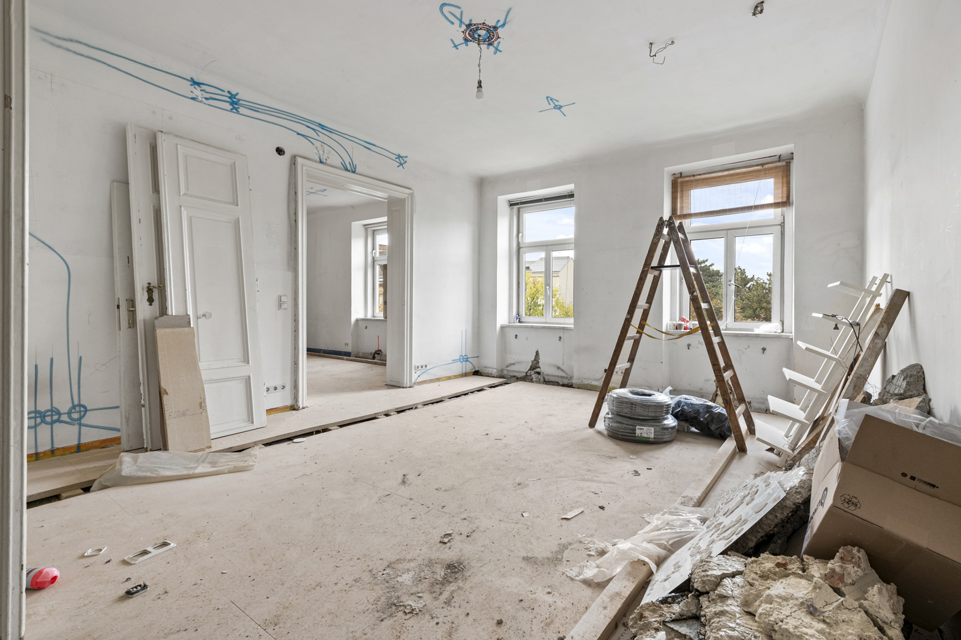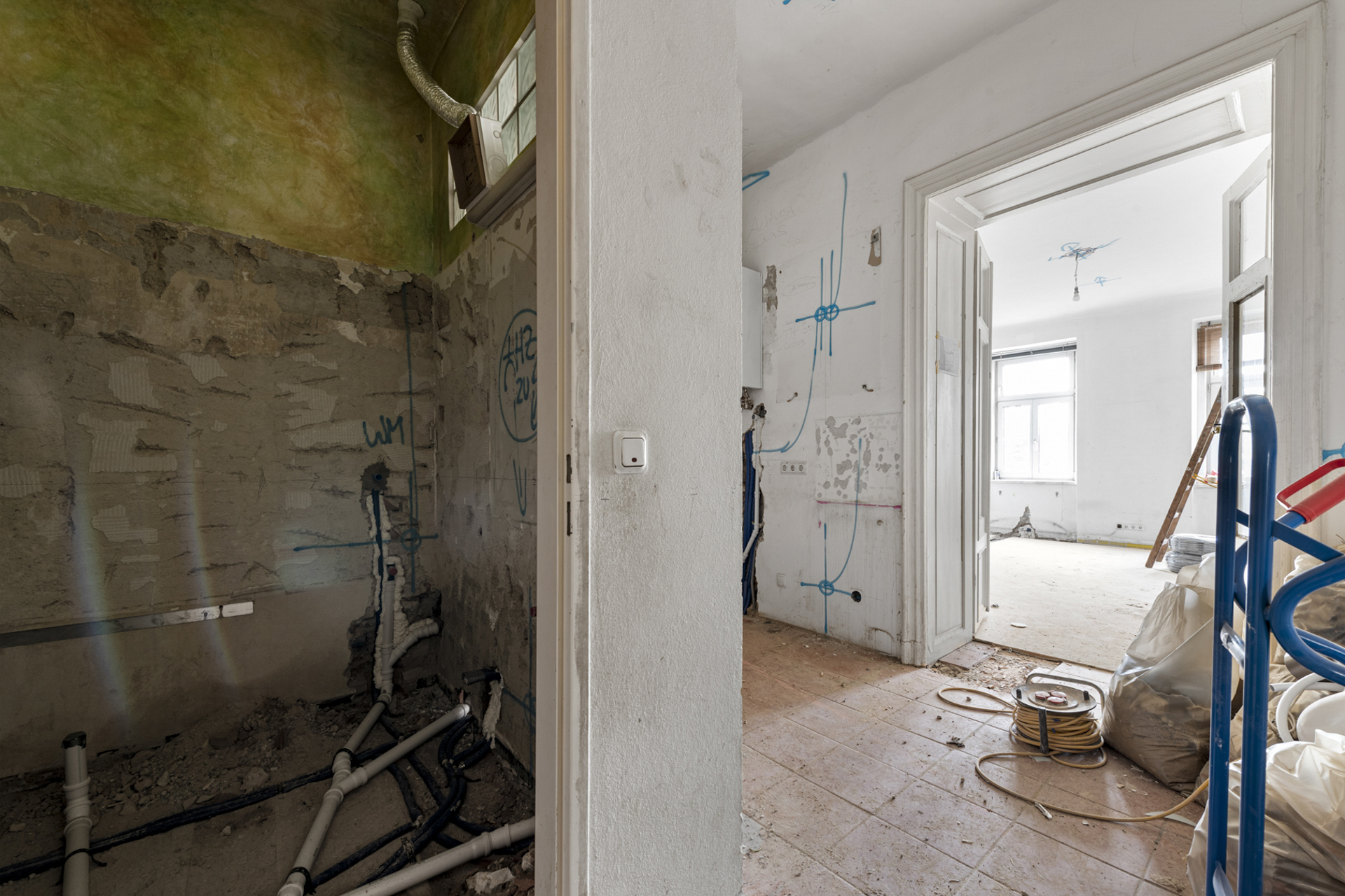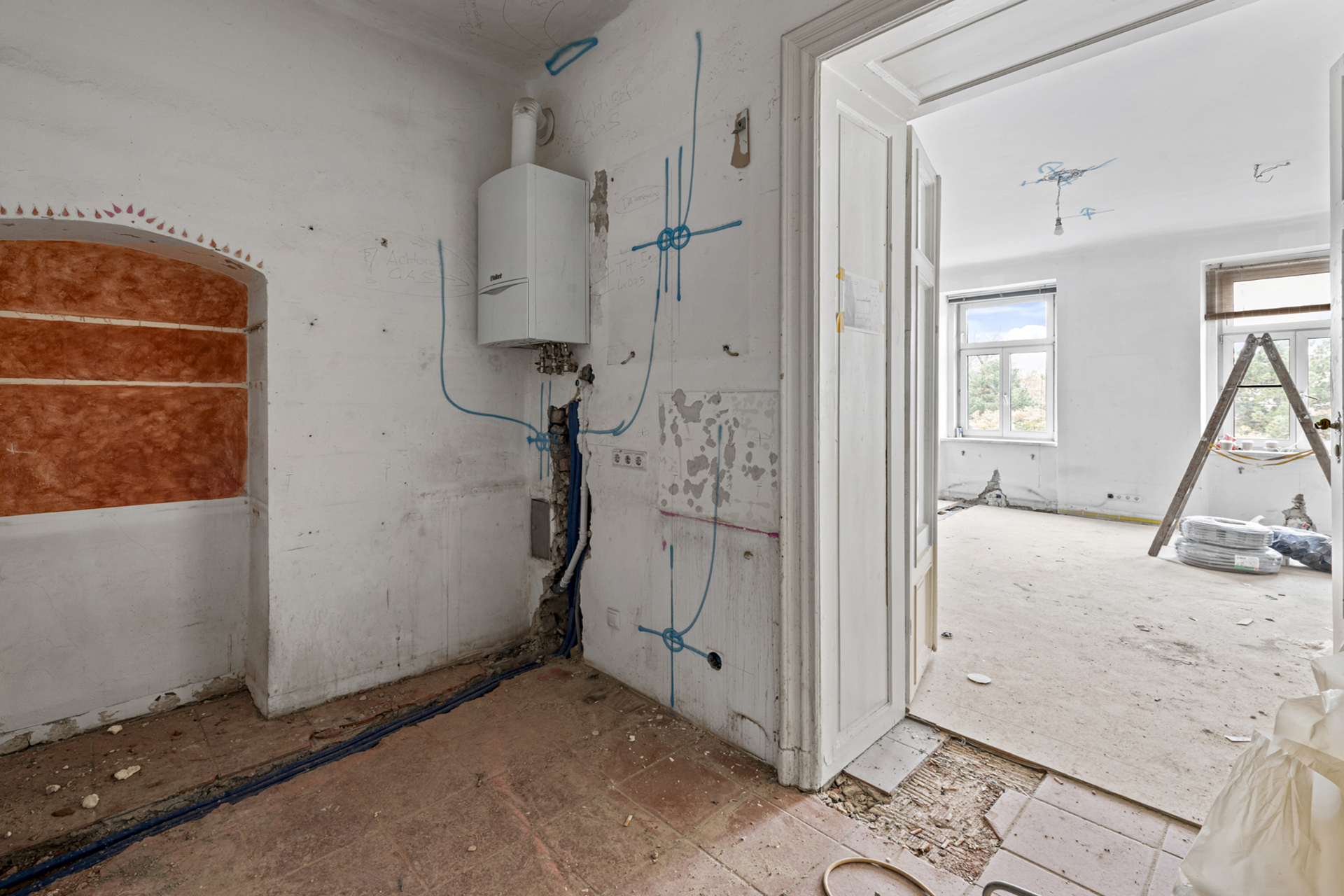 In der Strudlhofgasse 1 im 9. Bezirk Wiens sanieren wir gerade eine exquisite Altbauwohnung im klassischen Alt-Wien-Stil. Mit großer Hingabe zum Detail und einem tiefen Verständnis für die Erhaltung historischer Architektur modernisieren unsere Experten diese Wohnung. Die Immobilie verbindet dabei historischen Charme mit modernstem Wohnkomfort und repräsentiert unsere Fähigkeit, traditionsreiche Bausubstanz stilgerecht und zeitgemäß zu revitalisieren.